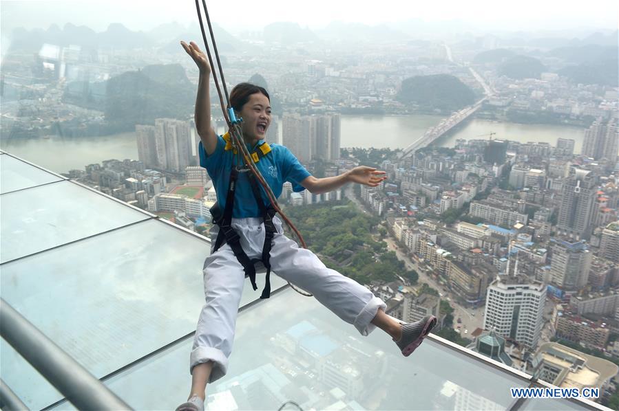 The glass road is 60 meters long and suspended on the steep cliff.